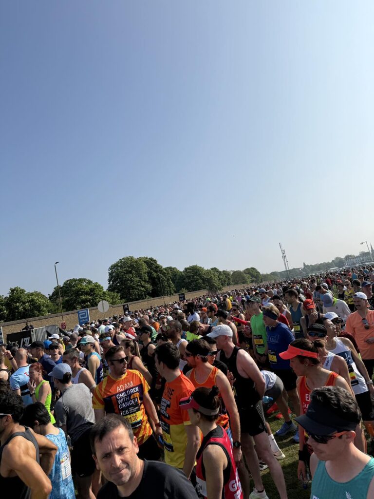 Am Sonntag ging es gemeinsam mit dem Laufreise-Veranstalter laufreisen um 6 Uhr in einem Privatbus direkt zum Startgelände des London Marathon. Gestartet wurde im Blackheath-Park an 3 verschiedenen Startorten, um die über 60.000 Starter auf die 42,195 km lange Strecke bringen zu können.