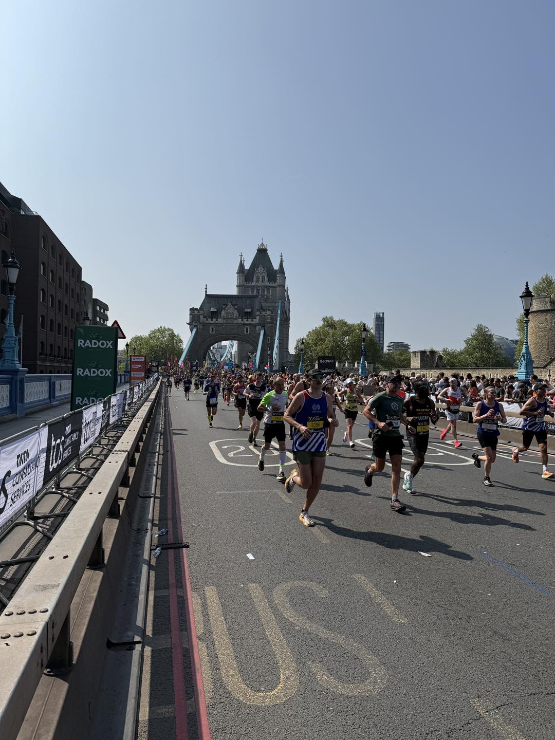 Rolf startete kurz nach 10 Uhr und lief wie geplant bis zum Halbmarathon bei der Tower Bridge ein schnelles Tempo. Da ab hier die ganzen Sehenswürdigkeiten folgten und er viele Fotos entlang der Strecke machen wollte, nahm er das Tempo raus und kam mit 5:01:53 Std. trotzdem zufrieden über die Ziellinie.